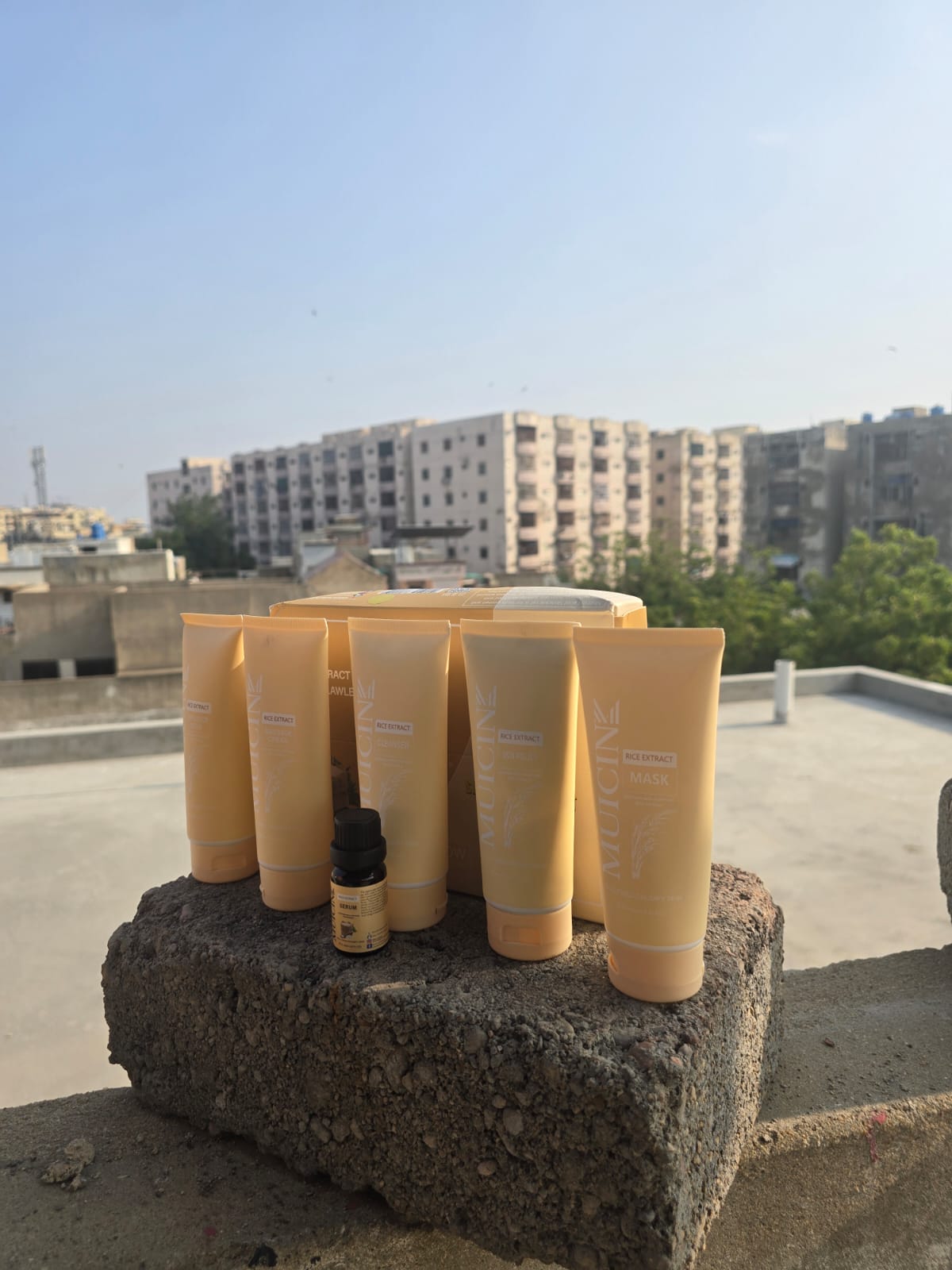 The Muicin Rice Facial Kit is your all-in-one skin-polishing treatment powered by the natural goodness of Rice Extracts, Milk Proteins, and Vitamin E. It gently removes impurities, brightens dull skin, and smooths texture giving your face that soft, luminous glow.